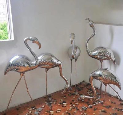 商店擺放不銹鋼拋光火烈鳥雕塑
