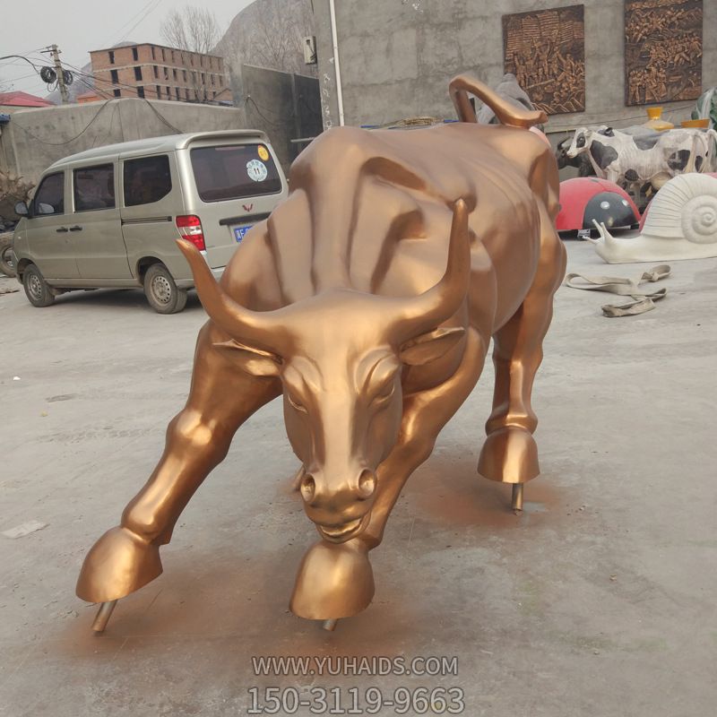 | 產品標題 | 公園里擺放的金色玻璃鋼噴漆華爾街牛雕塑 |