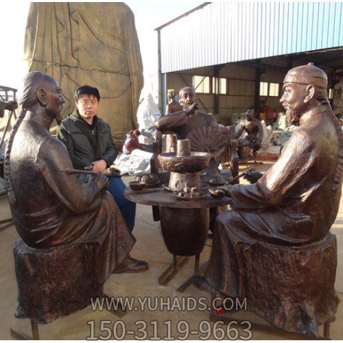 | 產(chǎn)品標題 | 景區(qū)景點玻璃鋼仿銅創(chuàng)意吃火鍋的人物情景雕塑 |