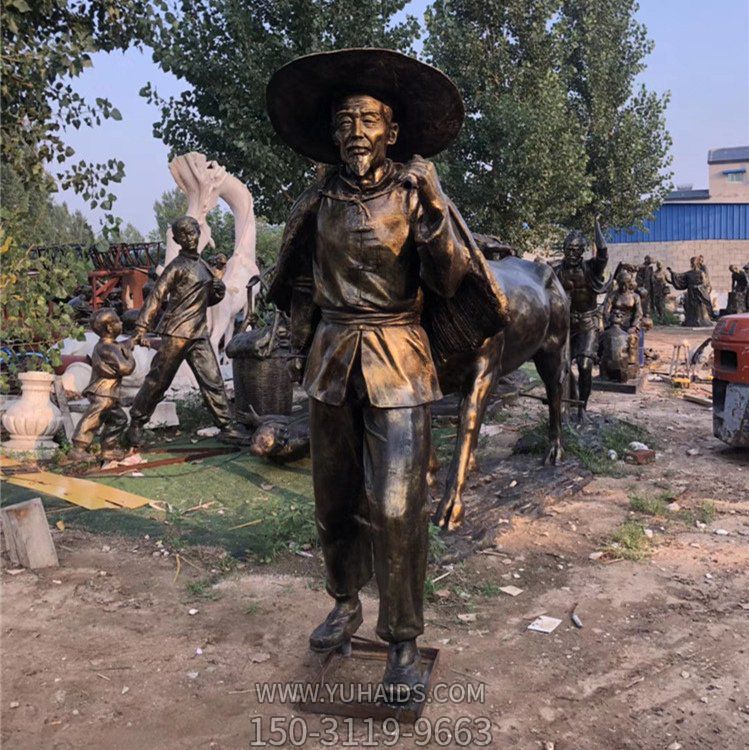 民俗落日而歸玻璃鋼仿銅人物雕塑