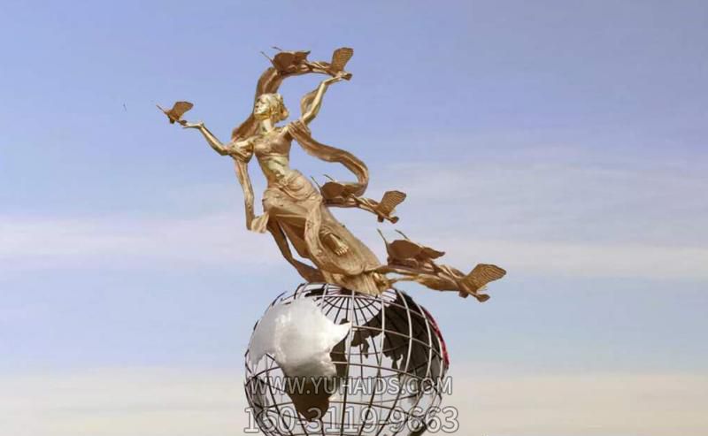 不銹鋼噴金嫦娥奔月地球儀雕塑.圖片展示