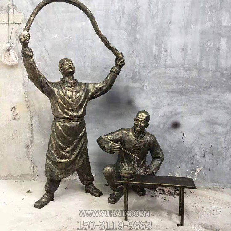 城市街道玻璃鋼仿銅吃面條的人物雕塑 城市街道玻璃鋼仿銅吃面條的人物雕塑