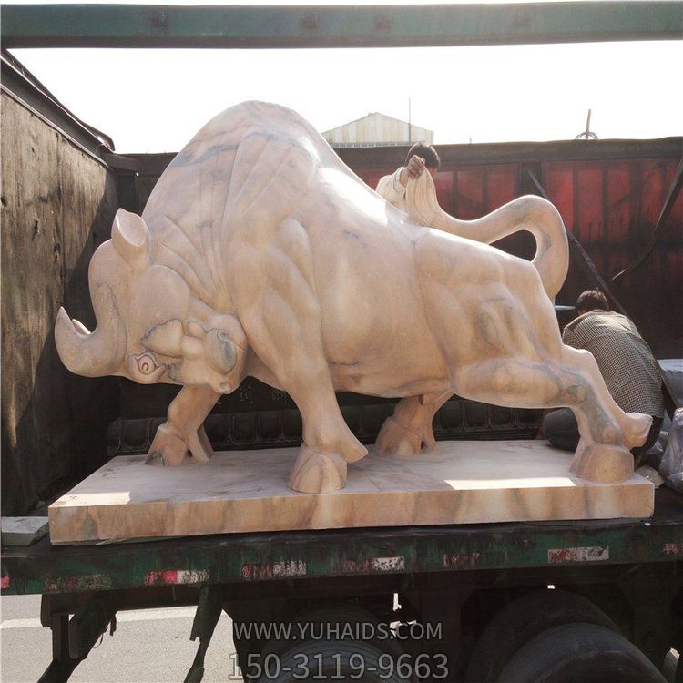 晚霞紅石雕戶外園林華爾街牛雕塑.圖片展示