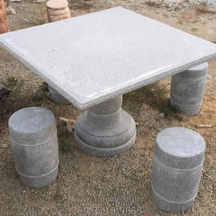 家用庭院擺放大理石雕刻方桌圓鼓石凳雕塑.圖片展示
