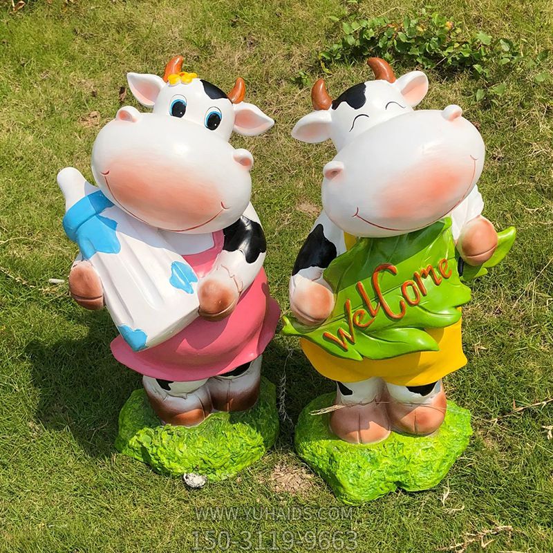 商場(chǎng)兩只卡通玻璃鋼牛雕塑 商場(chǎng)兩只卡通玻璃鋼牛雕塑