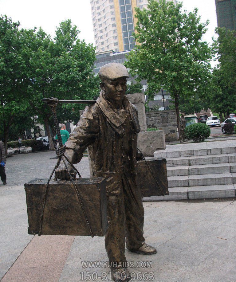 商業(yè)街邊鑄造挑著箱子的人物玻璃鋼仿銅雕雕塑 商業(yè)街邊鑄造挑著箱子的人物玻璃鋼仿銅雕雕塑
