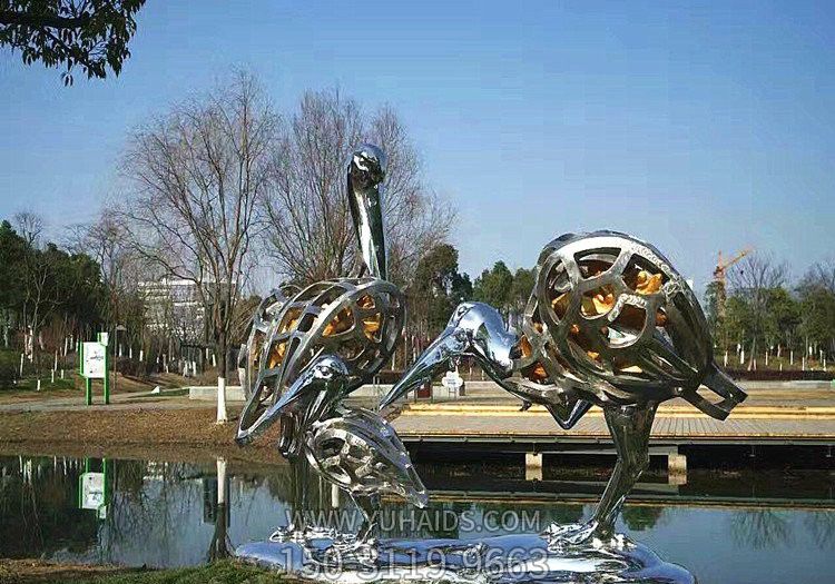不銹鋼鏡面池塘鏤空創意鶴雕塑.圖片展示