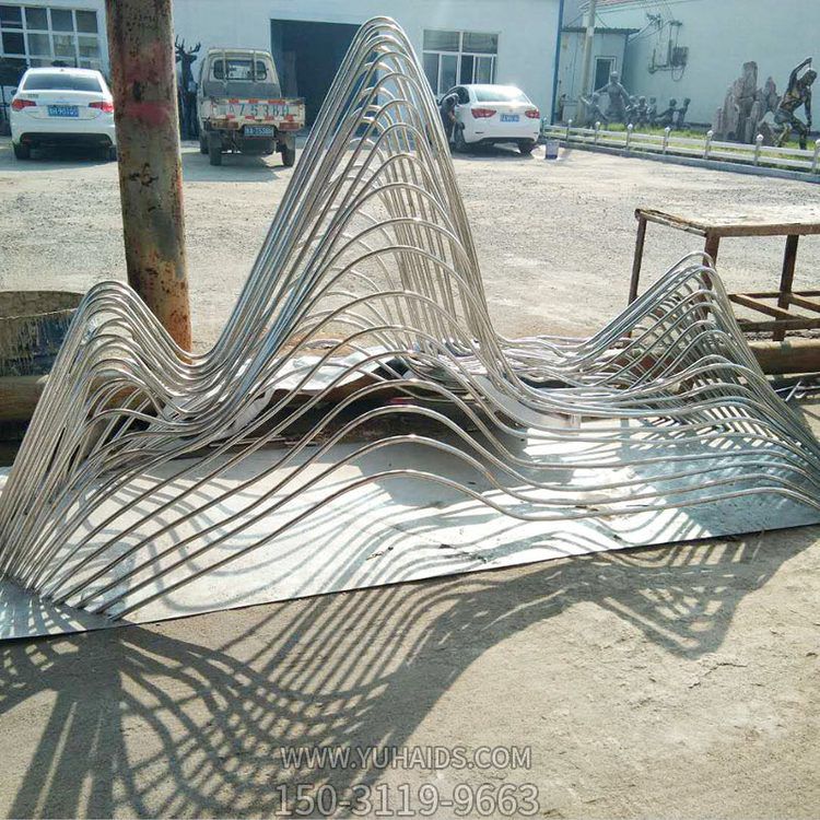 不銹鋼假山,不銹鋼管彎曲制作而成的山形擺件雕塑.圖片展示