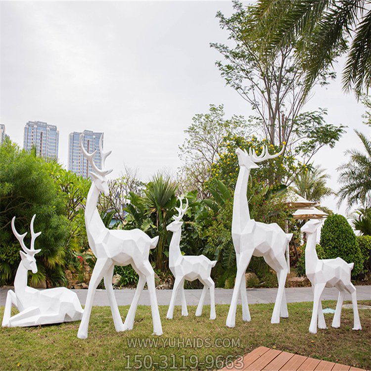 | 產品標題 | 玻璃鋼梅花鹿,白色塊面鹿群雕塑 |