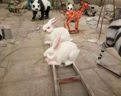 河邊街道一只大號抬前腳的玻璃鋼兔子雕塑.參數說明