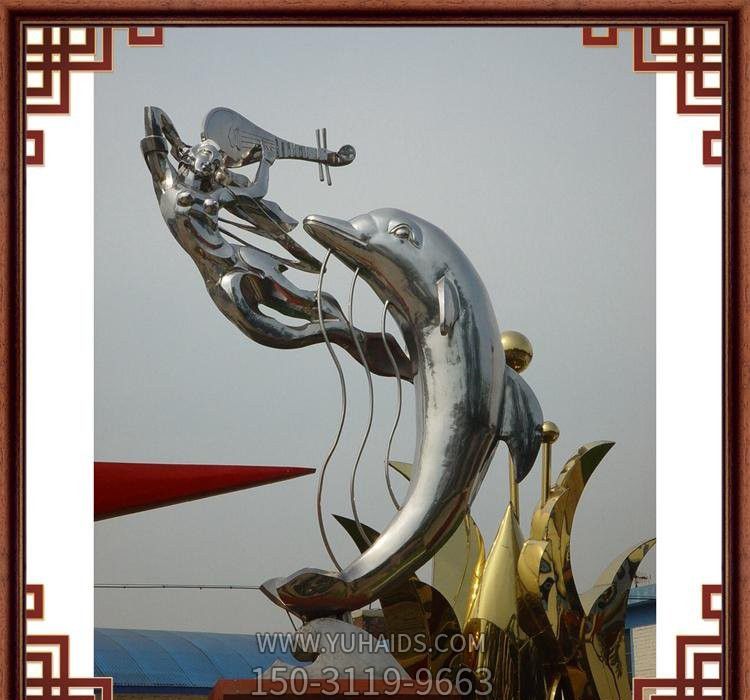 | 產品標題 | 景區一個彈琵琶的女孩和一只不銹鋼海豚雕塑 |