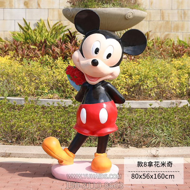 花園一只拿花的玻璃鋼彩繪米老鼠雕塑.參數(shù)說明
