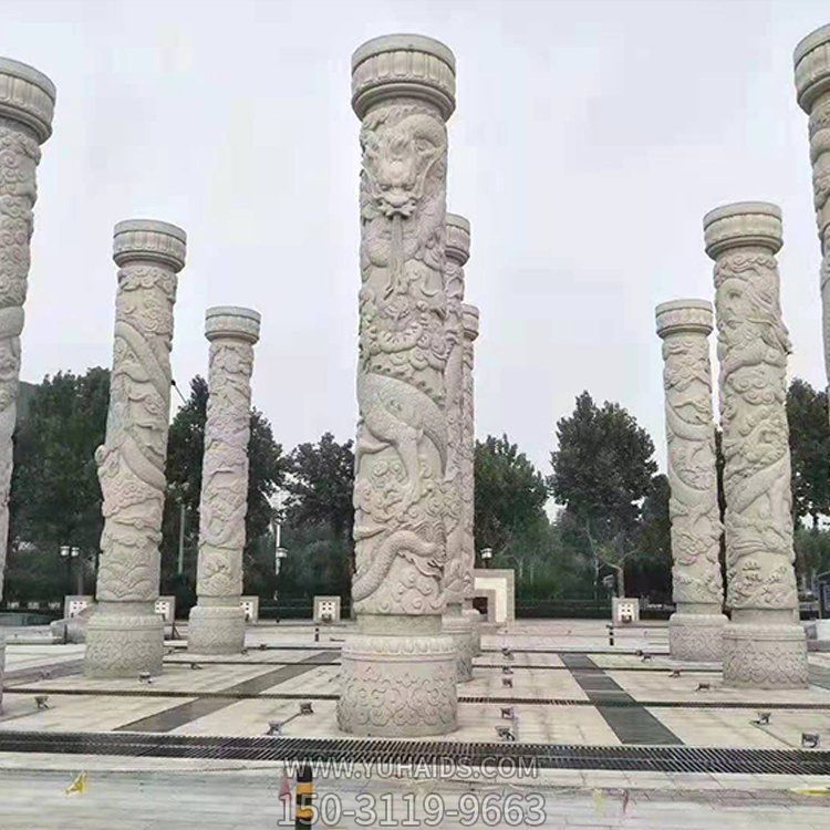 廣場天然石材漢白玉浮雕龍噴水柱石雕雕塑.詳細說明