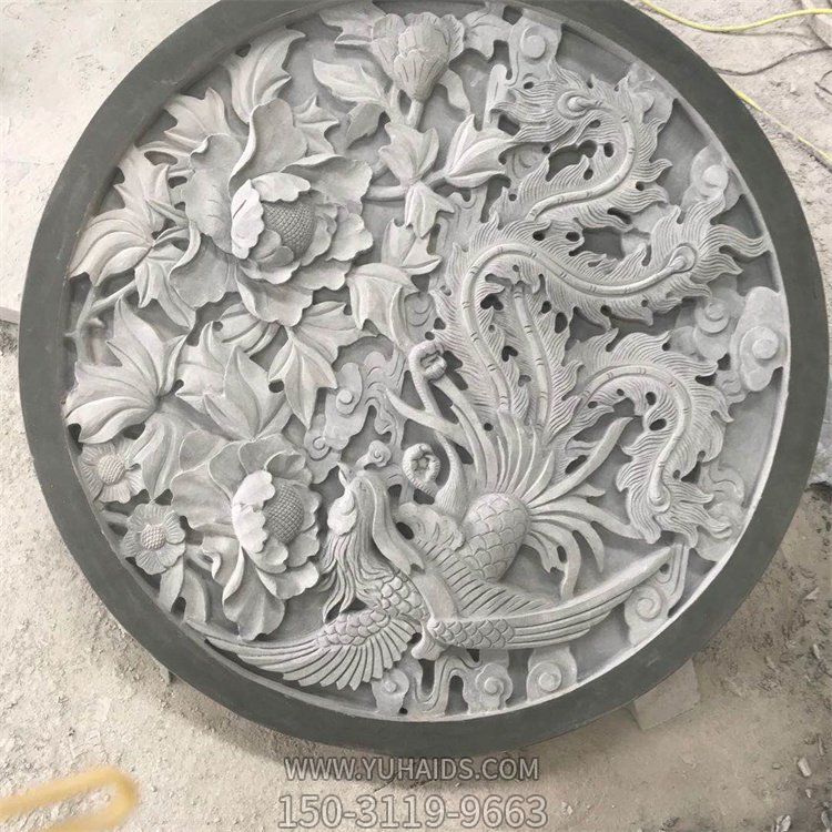 青石仿古浮雕鳳凰影壁磚雕新中式庭院背景墻裝飾雕塑.圖片展示