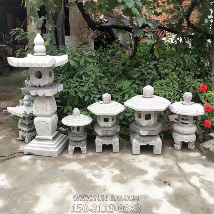 庭院裝飾擺放青石雕刻日式石燈雕塑.圖片展示