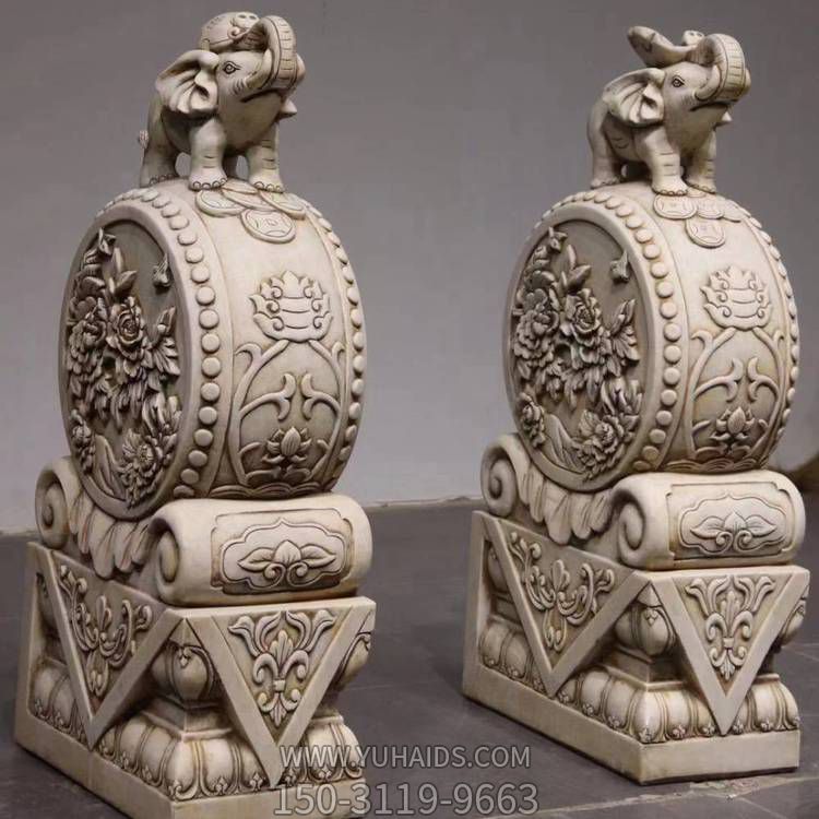 大理石浮雕招財小象抱鼓石庭院門口擺件雕塑.圖片展示