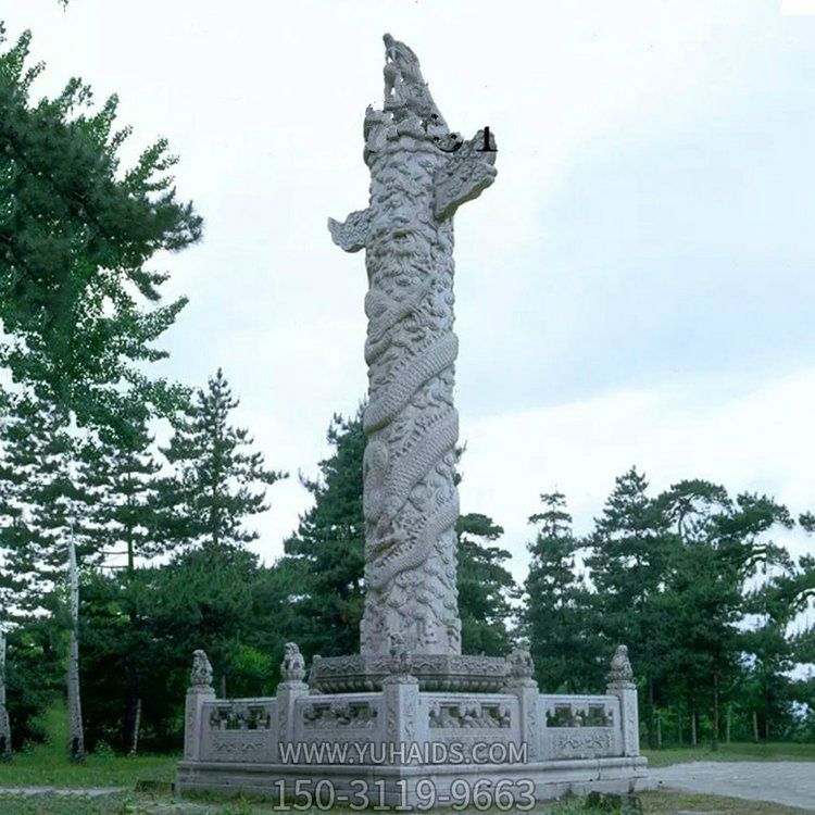 景區裝飾大理石浮雕龍紋華表石柱雕塑.圖片展示