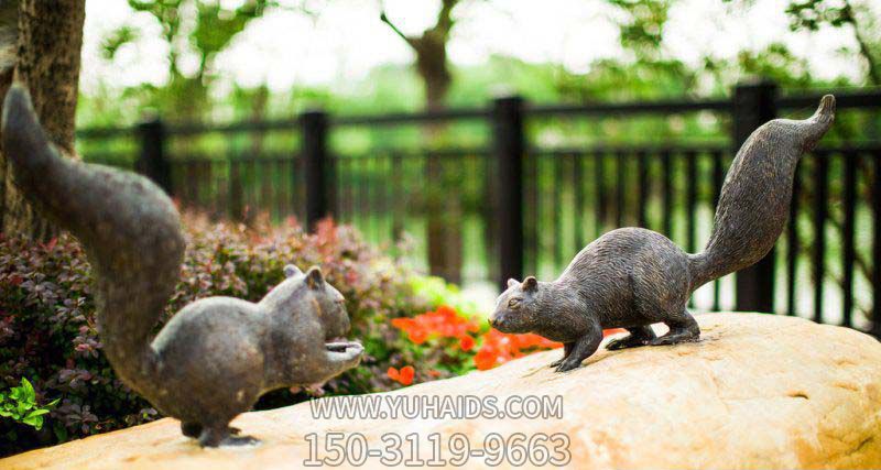 花園中兩只玩耍的玻璃鋼松鼠雕塑.圖片展示