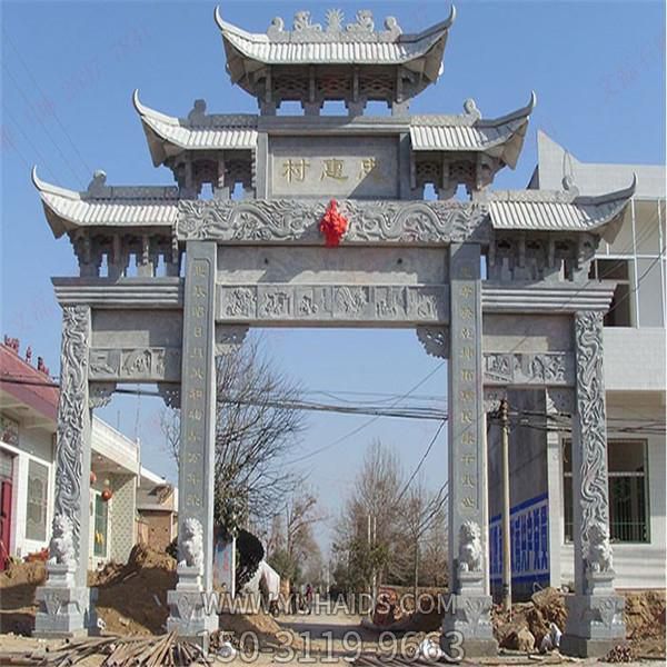 村莊入口仿古青石三門五樓景觀石牌坊雕塑.詳細說明