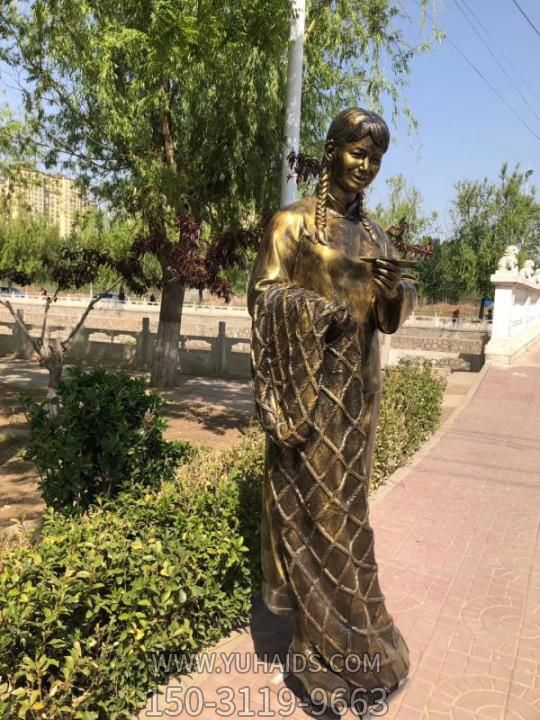 玻璃鋼仿銅民俗人物漁民女孩雕塑園林?jǐn)[件.圖片展示