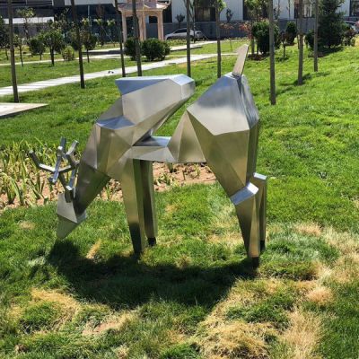 | 產(chǎn)品標(biāo)題 | 景區(qū)池塘不銹鋼幾何鏡面噴泉中央低頭喝水的梅花鹿雕塑 |