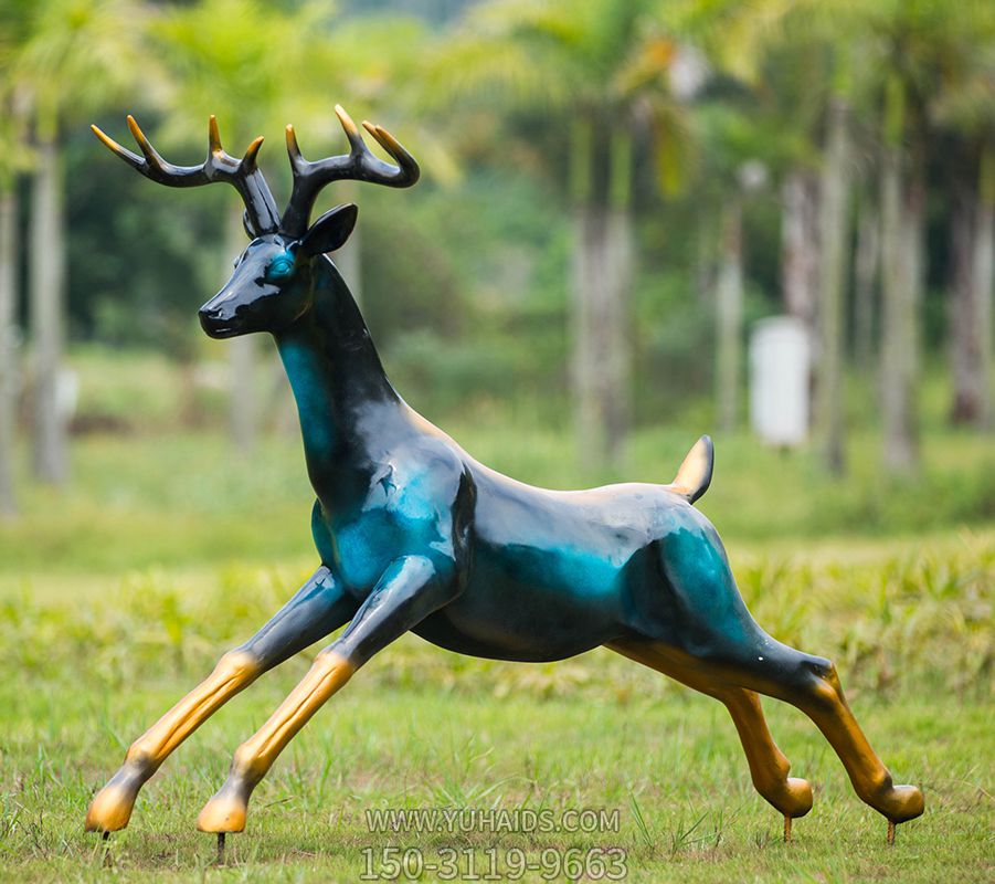景區玻璃鋼彩繪一只奔跑跳躍的梅花鹿雕塑