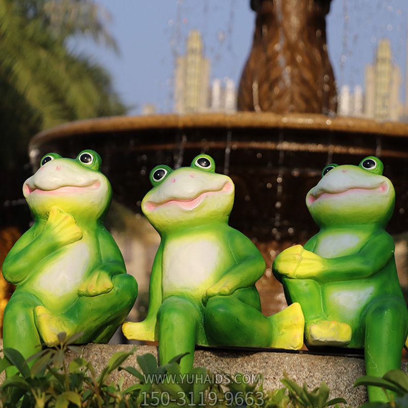 廣場三只可愛的玻璃鋼青蛙雕塑