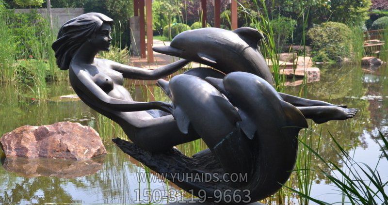 | 產品標題 | 河邊一位美女與多只石雕海豚玩耍的海豚雕塑 |