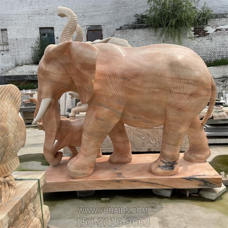 大理石晚霞紅雕刻大象雕塑企業酒店門口擺件