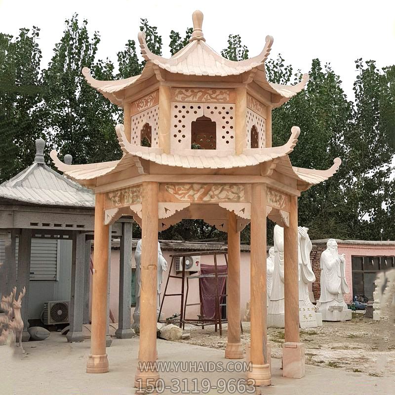 | 產(chǎn)品標(biāo)題 | 寺院戶外擺放晚霞紅復(fù)式頂休息涼亭雕塑 |