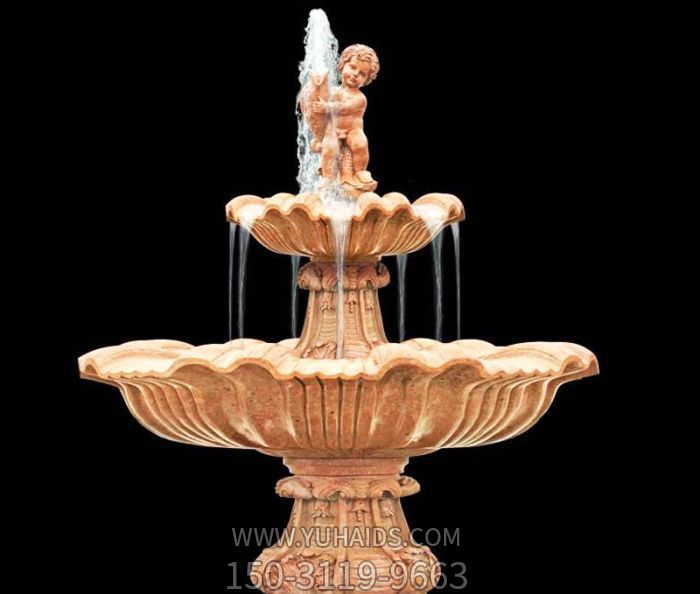 庭院擺放的雙層的黃蠟石石雕噴水雕塑 庭院擺放的雙層的黃蠟石石雕噴水雕塑
