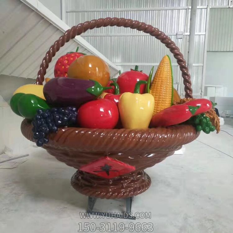農場裝飾仿真玻璃鋼彩繪豐收水果籃雕塑