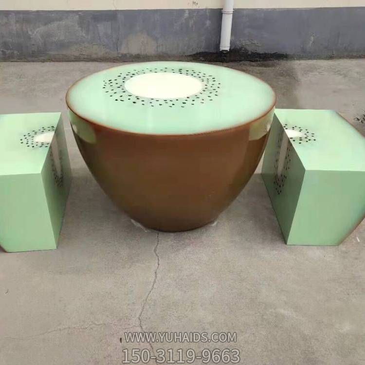 玻璃鋼獼猴桃桌凳,圓形桌子長條形坐凳雕塑