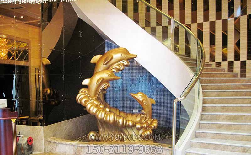 酒店擺放跳躍的黃銅海豚雕塑.詳細說明