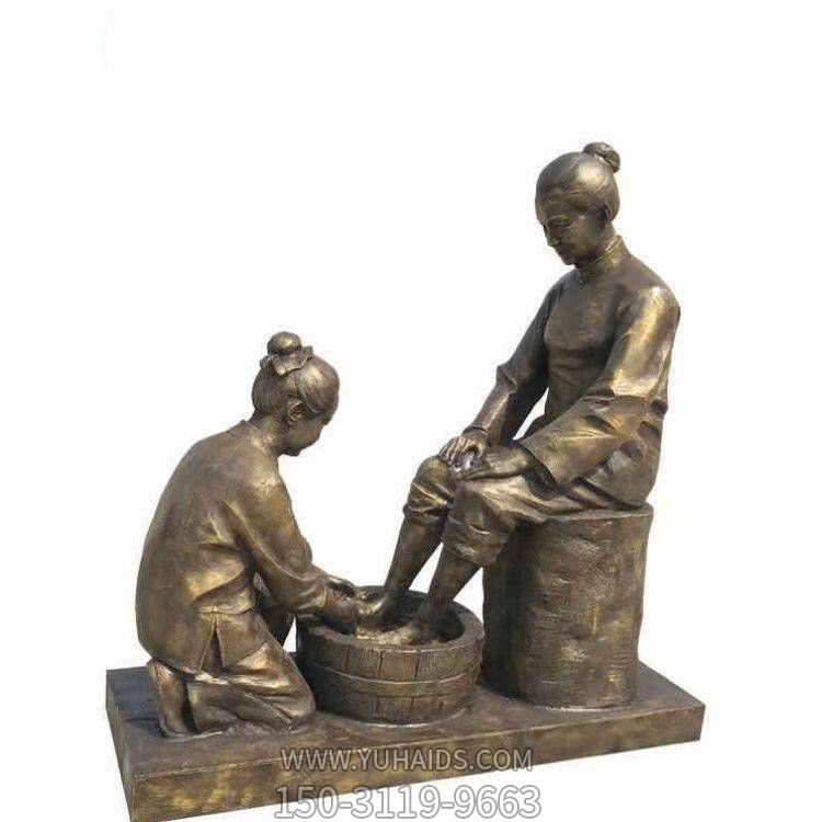 校園孝文化玻璃鋼仿銅洗腳人物小品雕塑.圖片展示