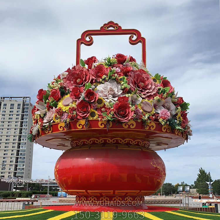 | 產品標題 | 玻璃鋼彩繪慶祝國慶節的大花籃雕塑 |