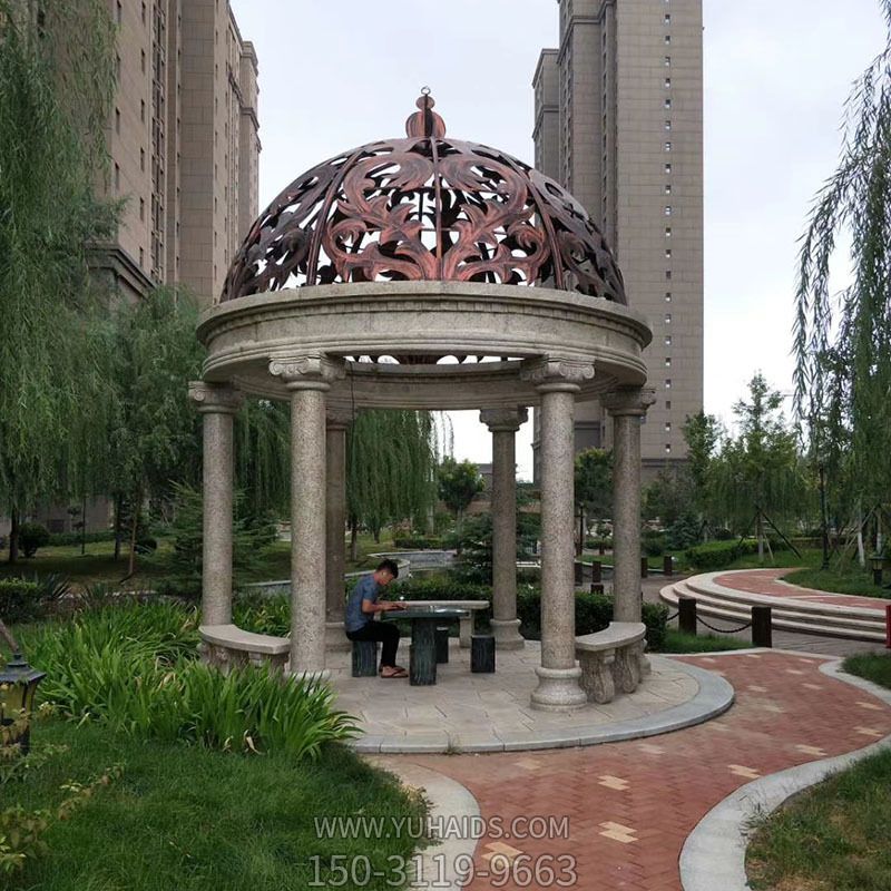 小區(qū)廣場擺放歐式鏤空涼亭座椅雕塑.圖片展示