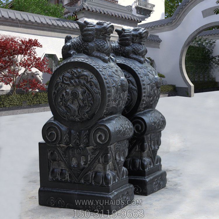 庭院別墅酒店大型仿古做舊青石石雕抱鼓石雕塑