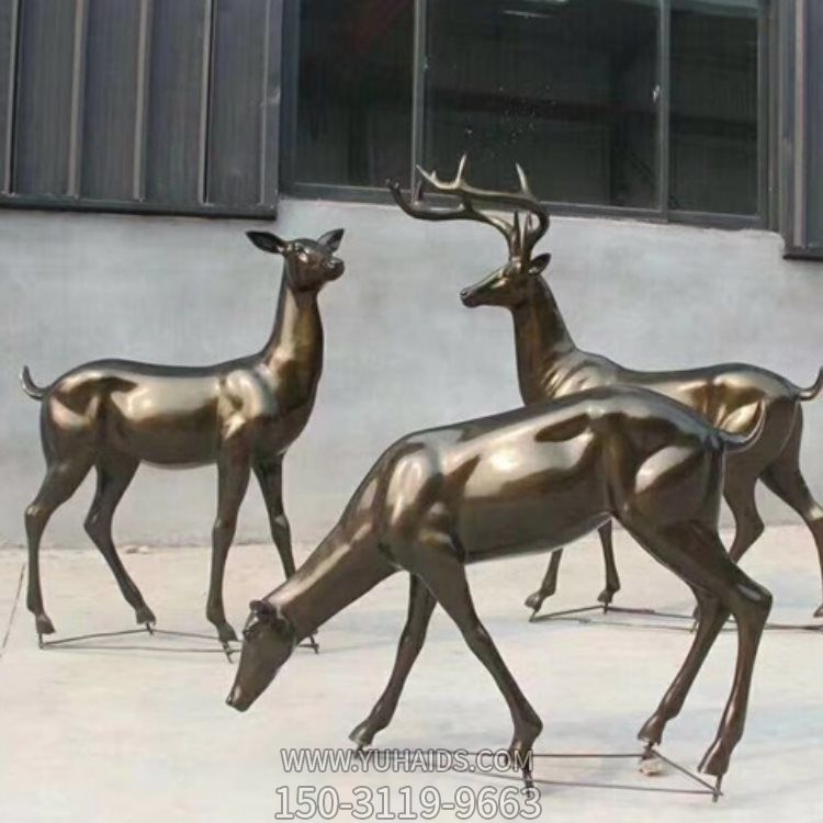 小區綠化擺放玻璃鋼仿銅鹿小品景觀雕塑