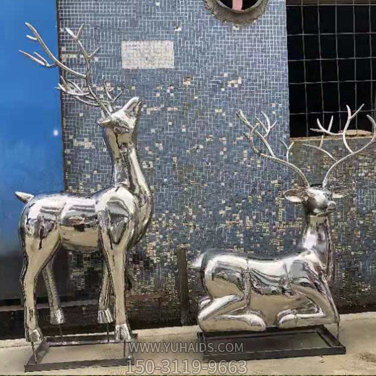 鏡面不銹鋼戶外園林景觀抽象梅花鹿雕塑.詳細說明