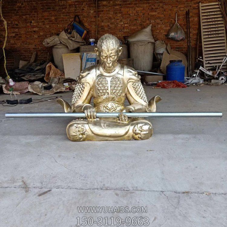 游樂場擺放玻璃鋼仿銅神話人物齊天大圣坐姿雕像雕塑.詳細說明