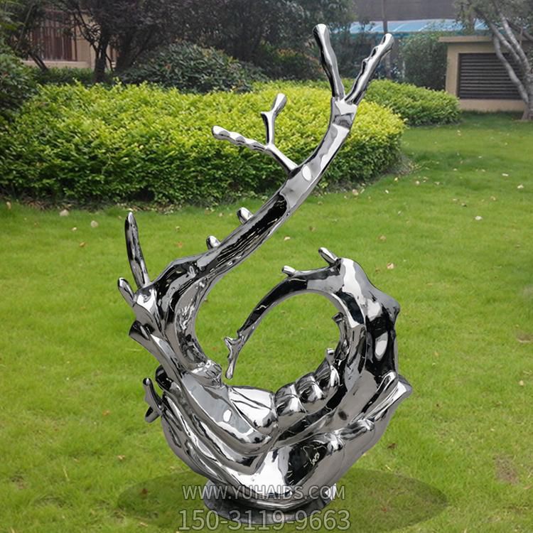 不銹鋼鏡面創意海浪浪花水景雕塑