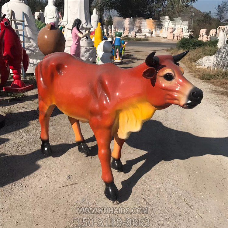 | 產品標題 | 農場室外擺放玻璃鋼黃牛動物雕塑 |