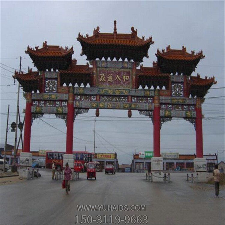 城市村莊路口裝飾仿古建彩繪門樓牌坊雕塑