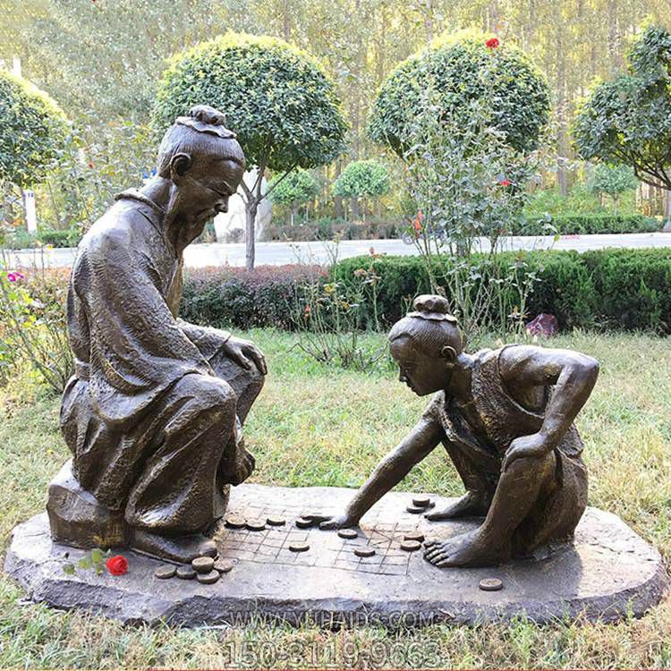 爺爺和孫子下象棋的情景人物銅雕雕塑 爺爺和孫子下象棋的情景人物銅雕雕塑