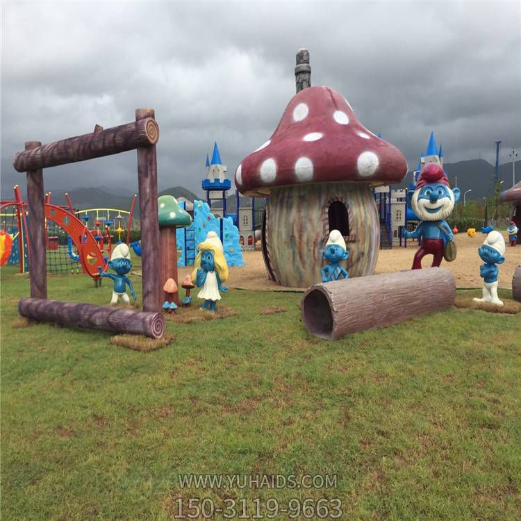 兒童游樂場玻璃鋼彩繪卡通藍精靈人物雕塑