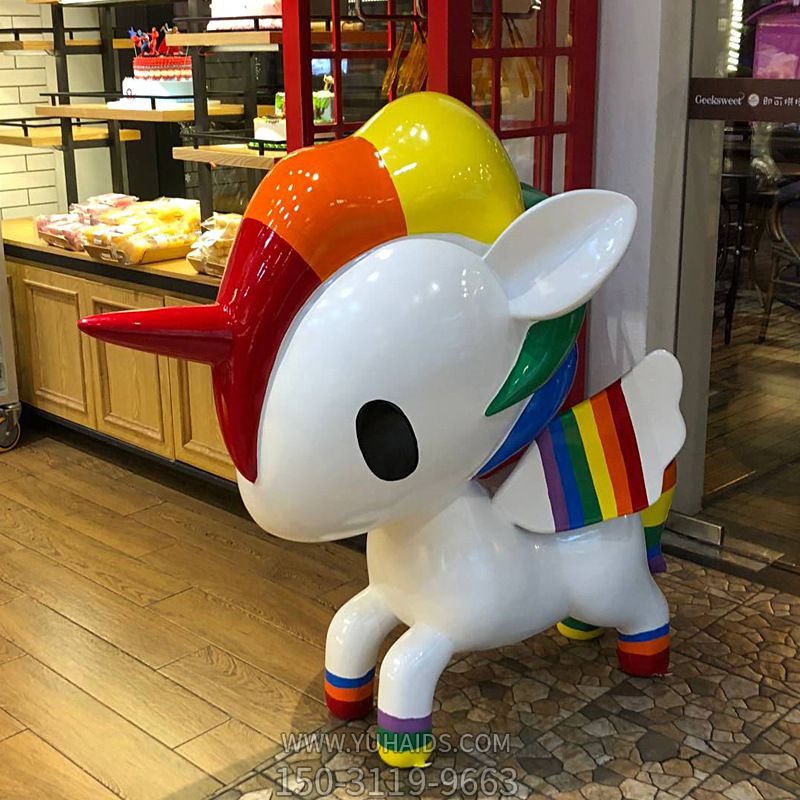 商場里擺放的彩色的玻璃鋼彩繪獨角獸雕塑.詳細說明