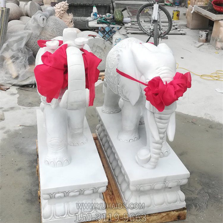 | 產品標題 | 企業擺放招財納福漢白玉雕刻小象門墩雕塑 |