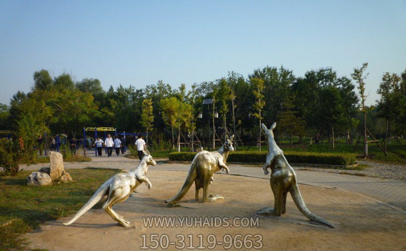 景區擺放三只大號不銹鋼袋鼠雕塑.圖片展示