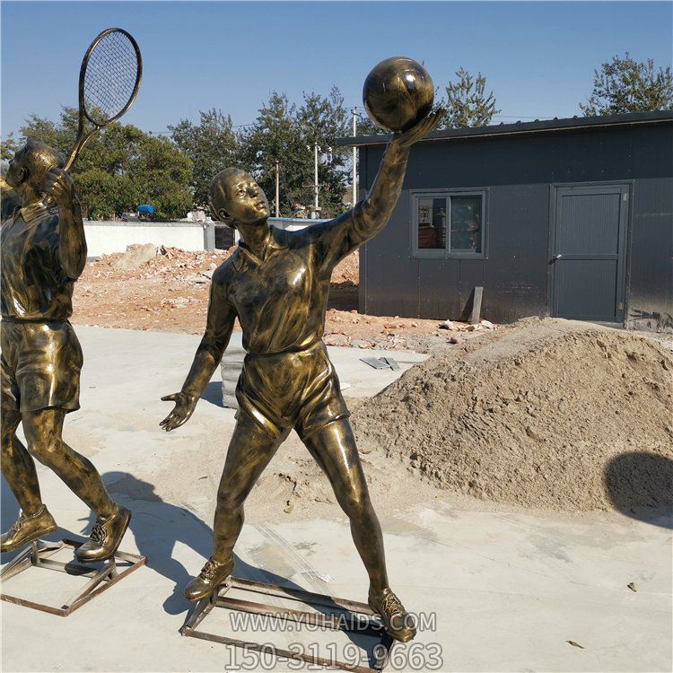 校園廣場玻璃鋼仿銅遠動打球的人物雕塑.詳細說明